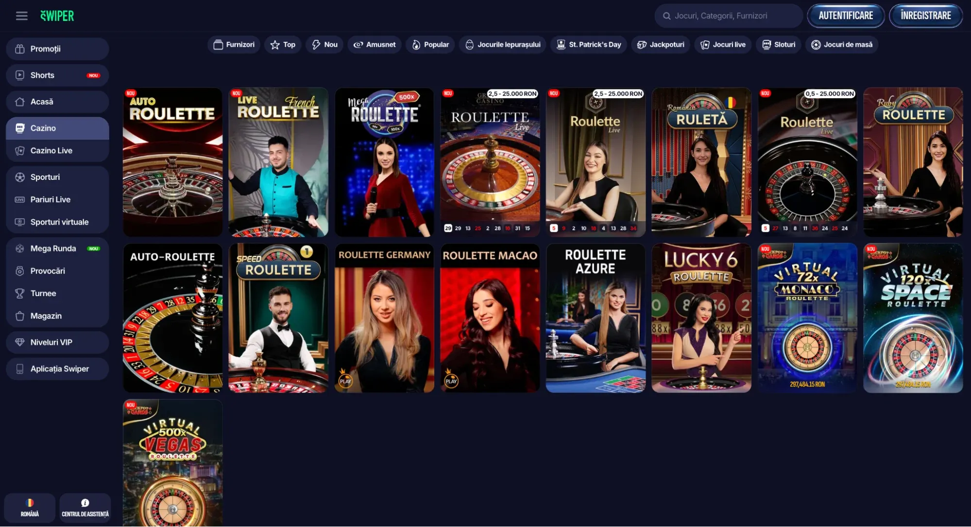 🎥 Ruletă live cu dealer real pe Swiper.ro